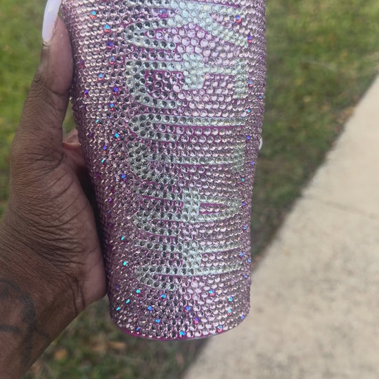 Custom Bling Timbler With Straw made with high quality glass stones, just for you! All sales are final!